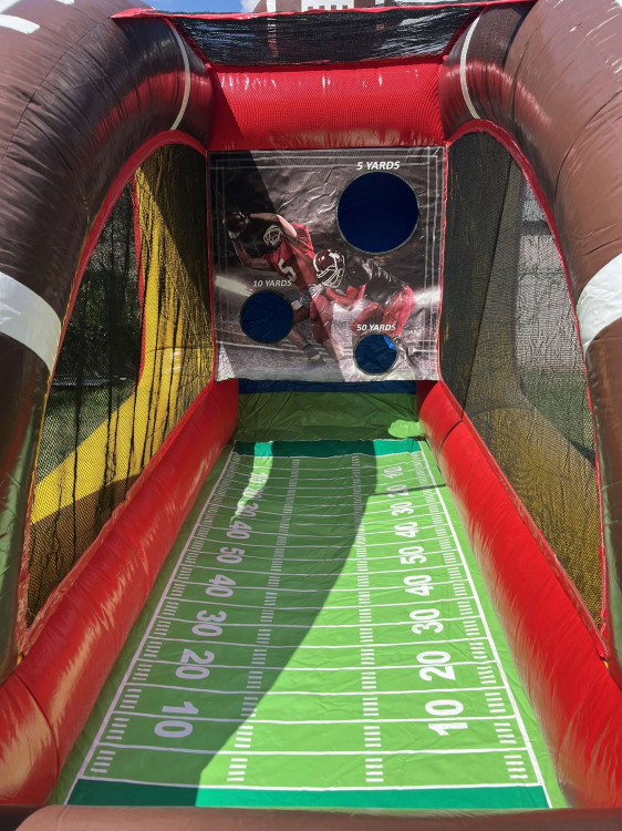 "Football Throw" is an exhilarating rental activity where participants get to test their quarterback skills by tossing footballs through various targets to score points. Ideal for sports-themed events or parties, it combines friendly competition with fun, ensuring everyone can feel like a pro on game day. Great for all ages, this game enhances hand-eye coordination and keeps the energy high at any gathering!